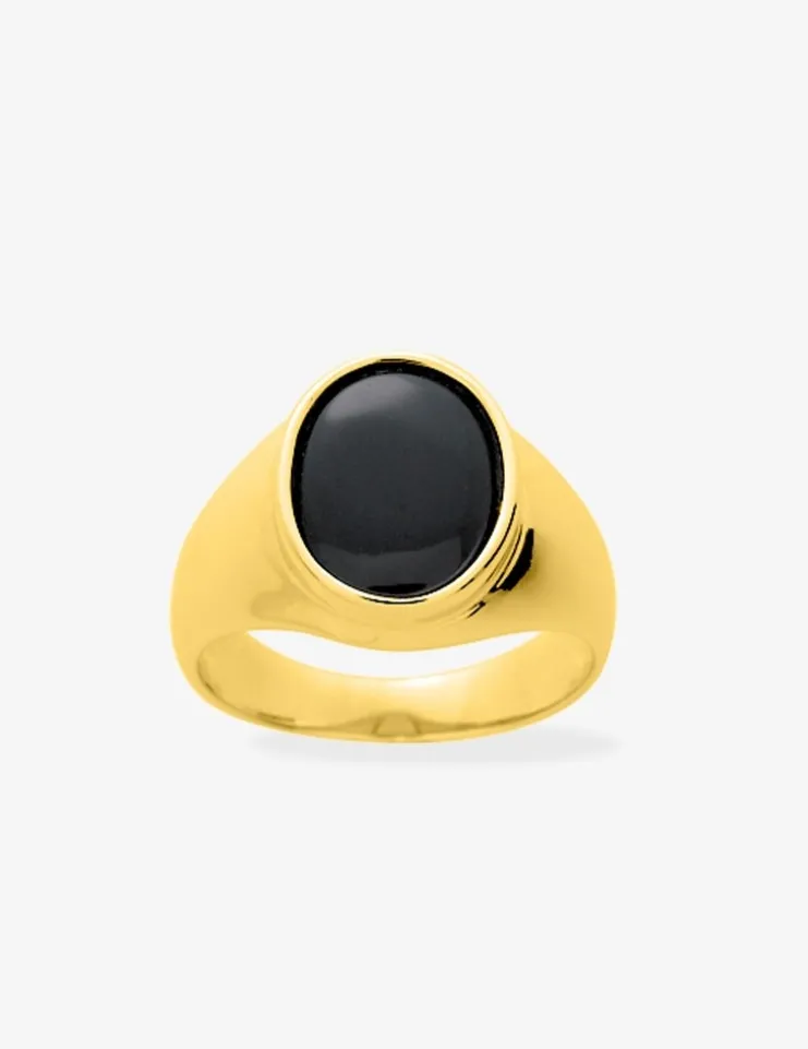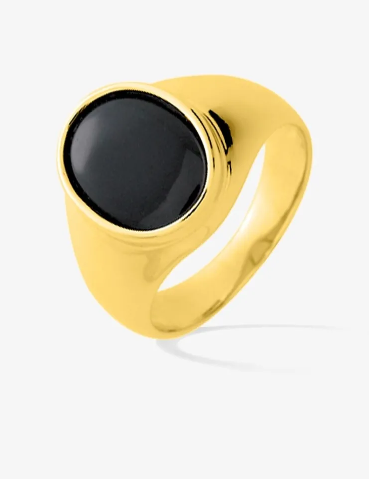 Chevalière onyx ovale 10 mm plaqué or SO OR