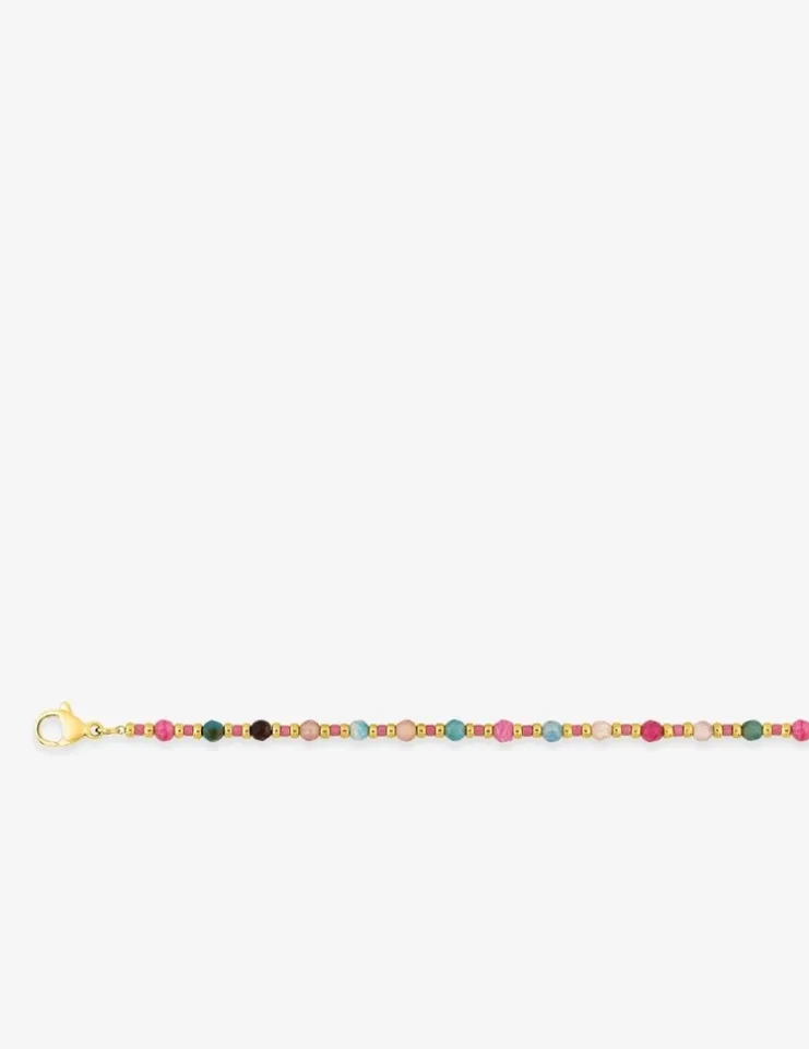 Ce collier en acier doré se distingue par ses délicates boules de verre rose et multicolores de 3 mm, apportant une touche de couleur à votre tenue. D’une longueur de 38 cm avec une rallonge de 5 cm, il s’adapte parfaitement à votre cou tout en restant confortable grâce à son poids léger de 4,60 g. Son fermoir mousqueton assure une fixation sécurisée et facile à manipuler, pour un bijou à la fois élégant et pratique que vous porterez avec plaisir au quotidien ou lors d’occasions spéciales.