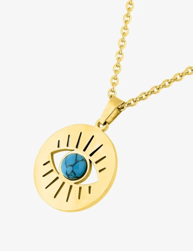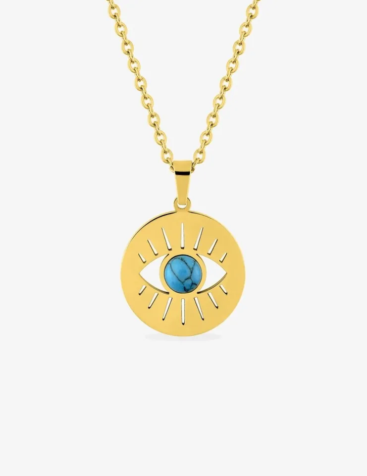 Collier acier doré pendentif œil et turquoise bleue SO OR
