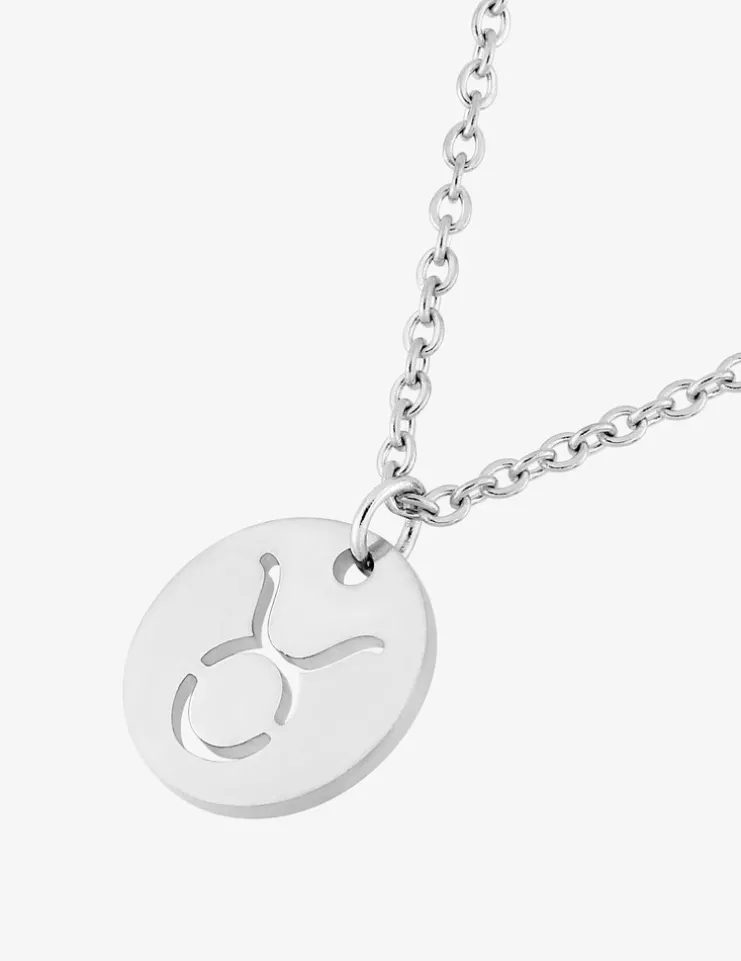 Collier acier gris avec pendentif signe zodiaque taureau SO OR