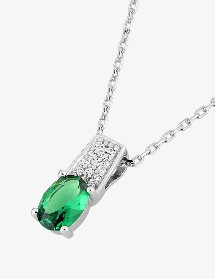 Collier argent 925‰ pendentif oxyde vert fantaisie serti griffes SO OR