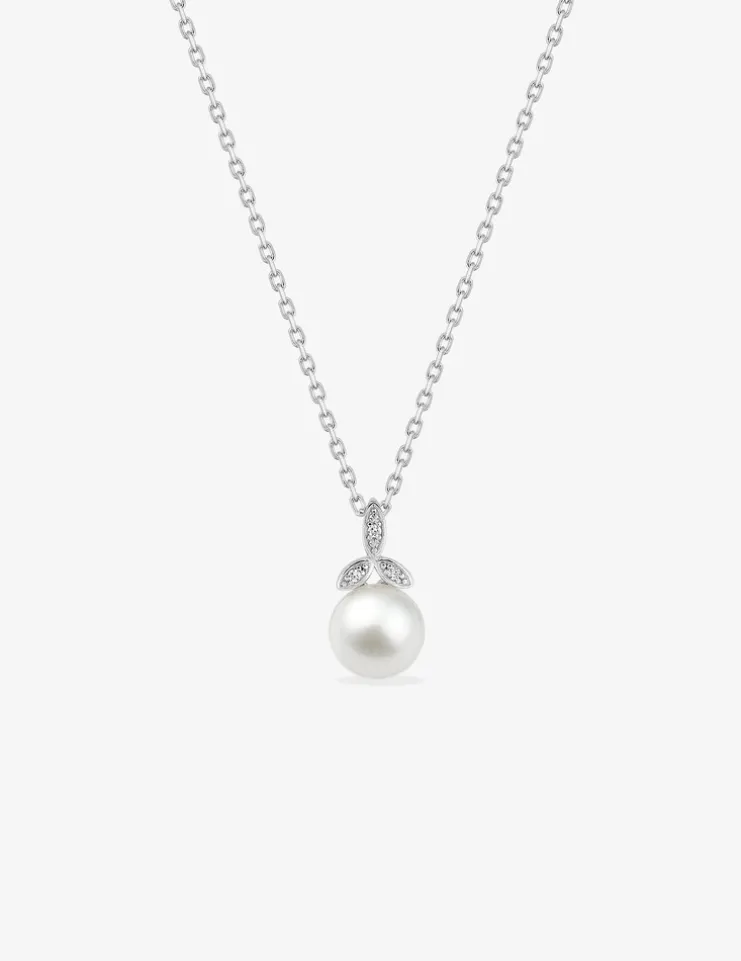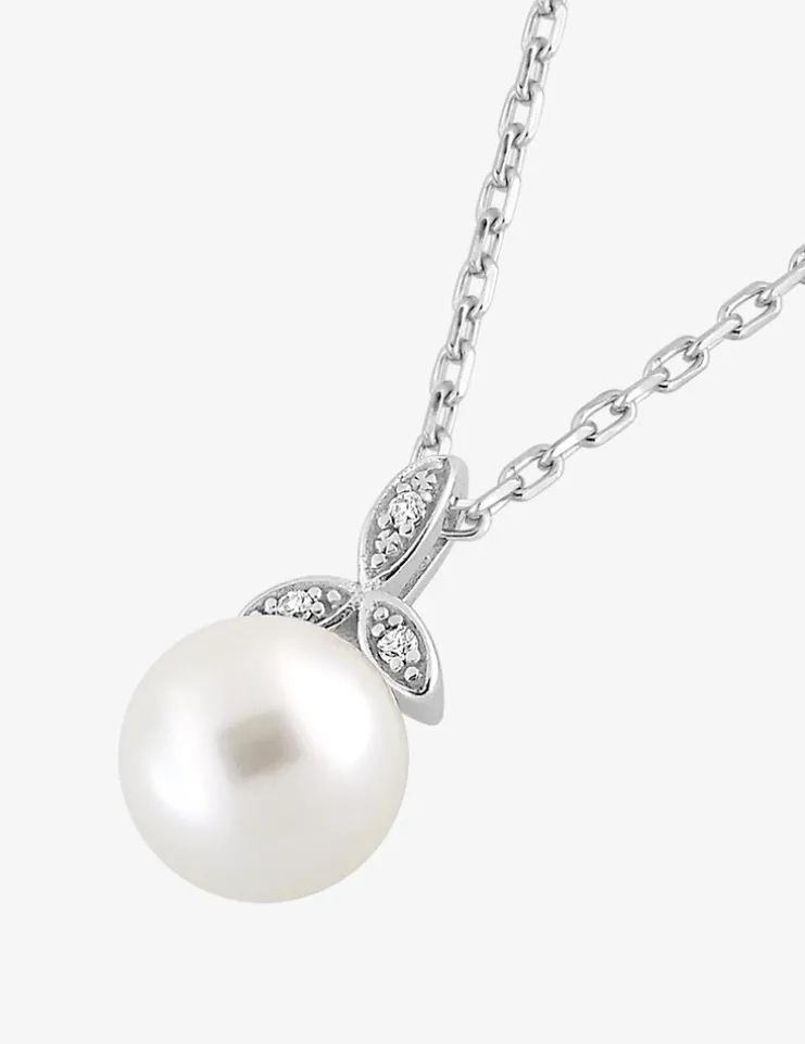 Collier argent 925‰ rhodié perle 7 mm et trilogie oxydes de zirconium SO OR