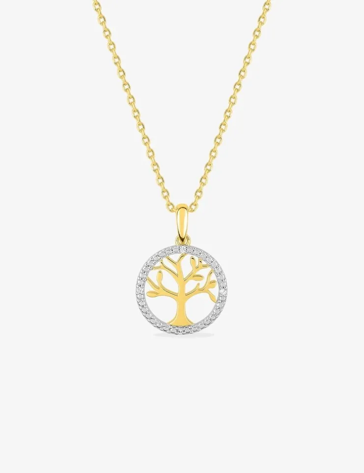Collier chaîne forçat motif arbre de vie plaqué or et cercle oxydes de zirconium sur rhodium SO OR