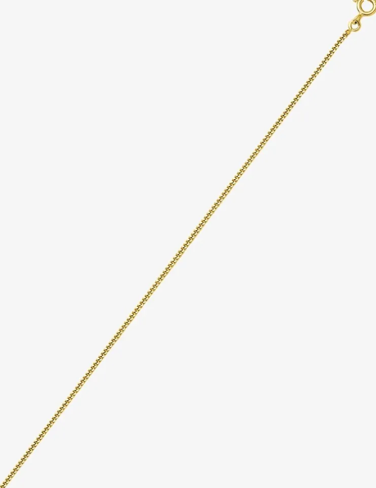 Cette chaîne gourmette diamantée classique et incontournable est faite en plaqué or et a une largeur de 1,35 mm. Elle possède un fermoir en anneau ressort.