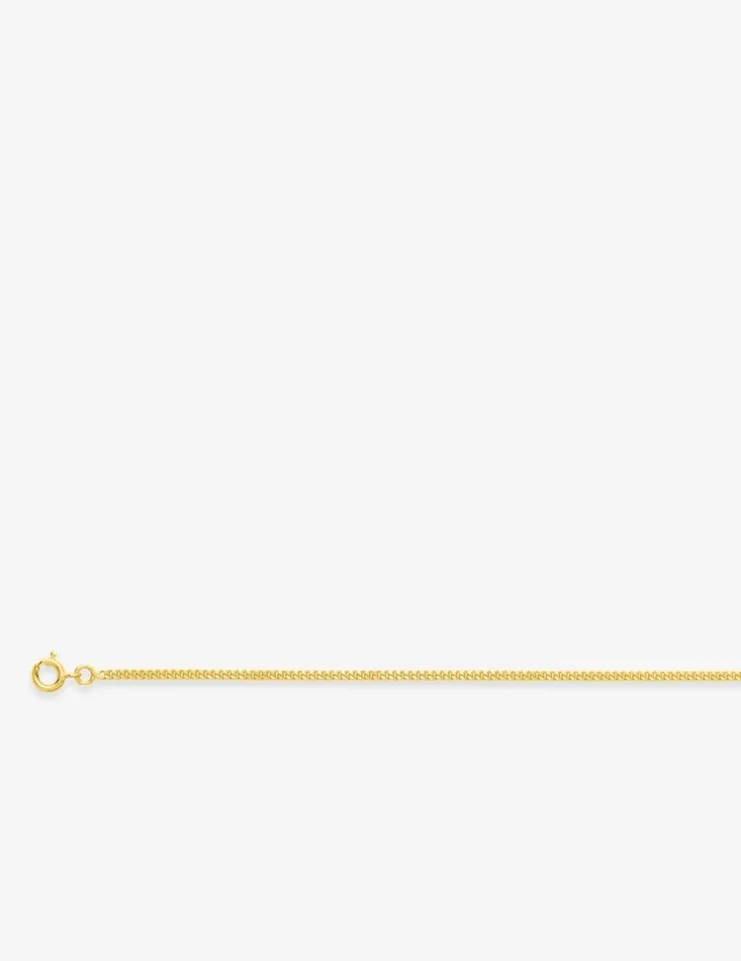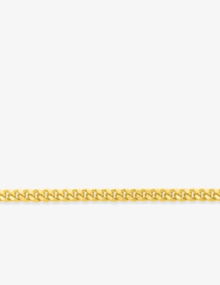 Cette chaîne gourmette diamantée classique et incontournable est faite en plaqué or et a une largeur de 1,70 mm. Elle possède un fermoir en anneau ressort.