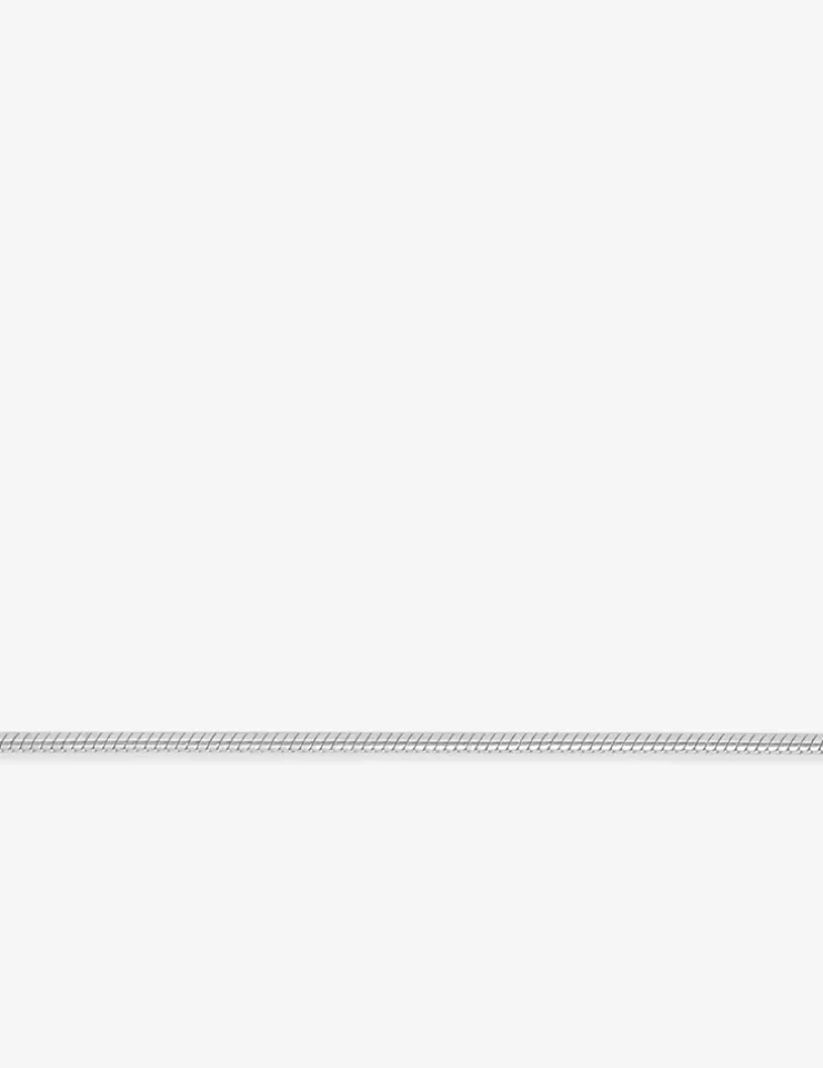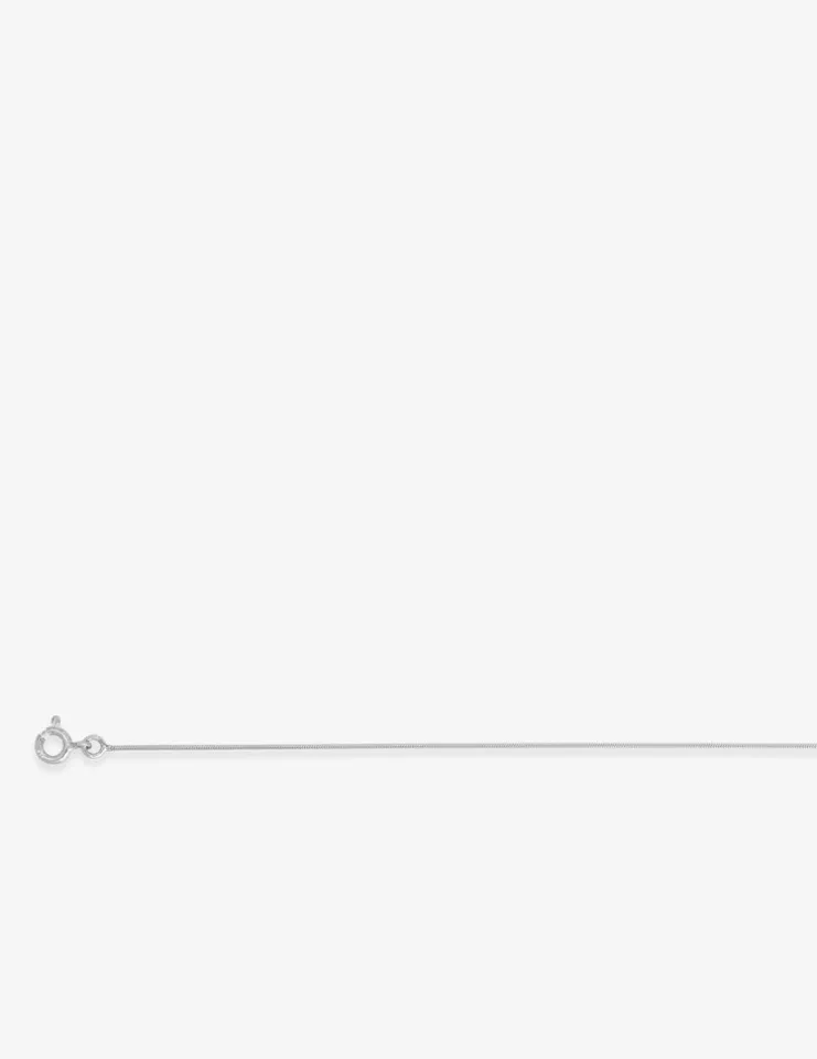 Cette fine chaîne en argent 925‰ rhodié possède une maille serpentine de 0,5 mm de largeur. Son fermoir est un anneau ressort. Elle s’accordera parfaitement avec un petit pendentif en argent.