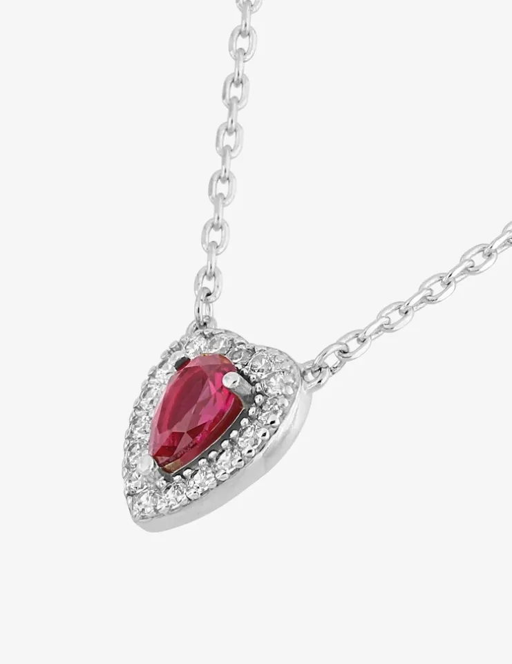 Collier cœur argent 925‰ rhodié et oxyde de zirconium rouge accompagné SO OR