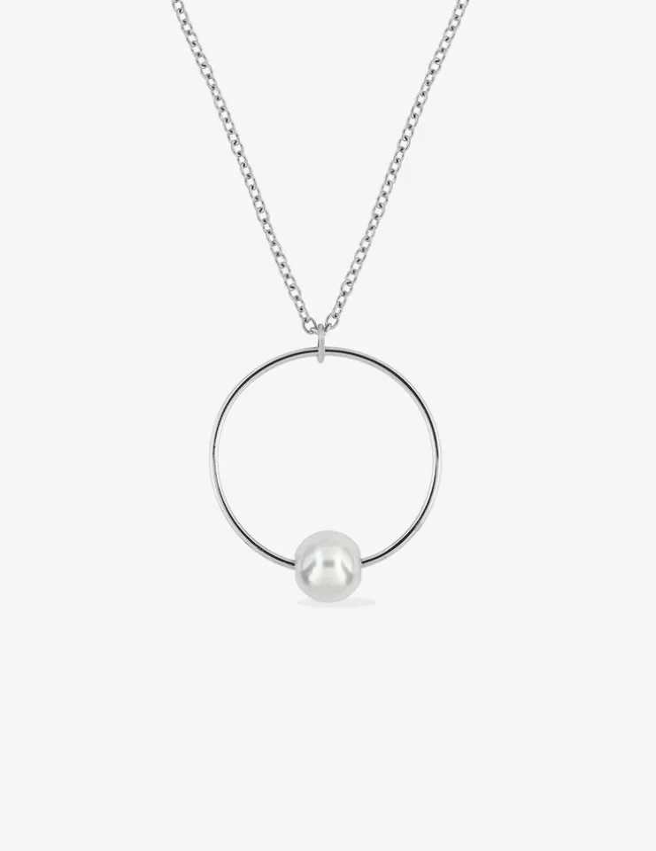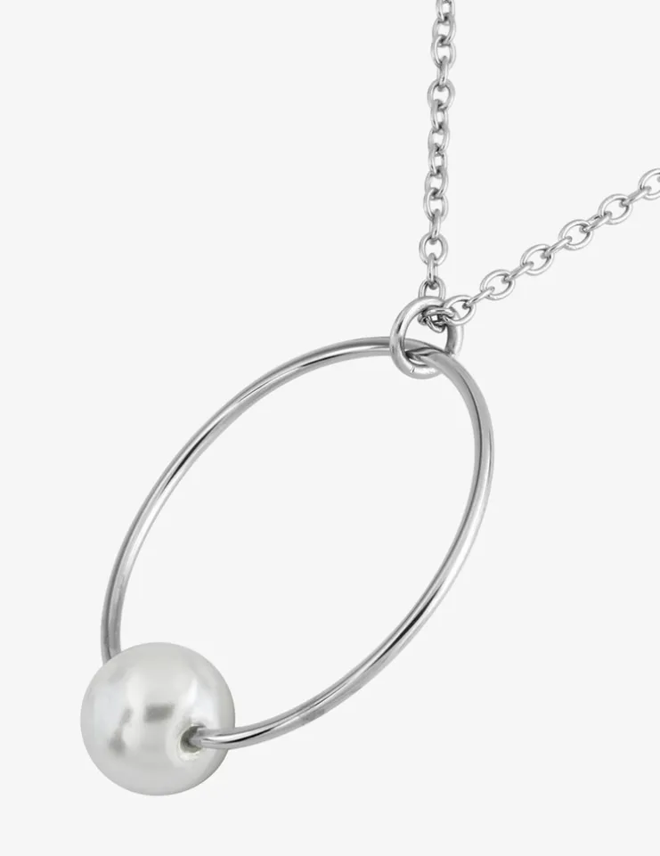 Collier en acier, breloque ronde avec perle d'imitation SO OR