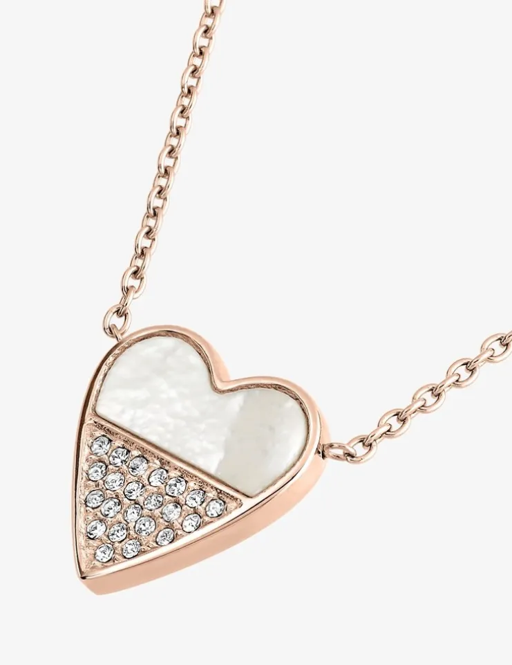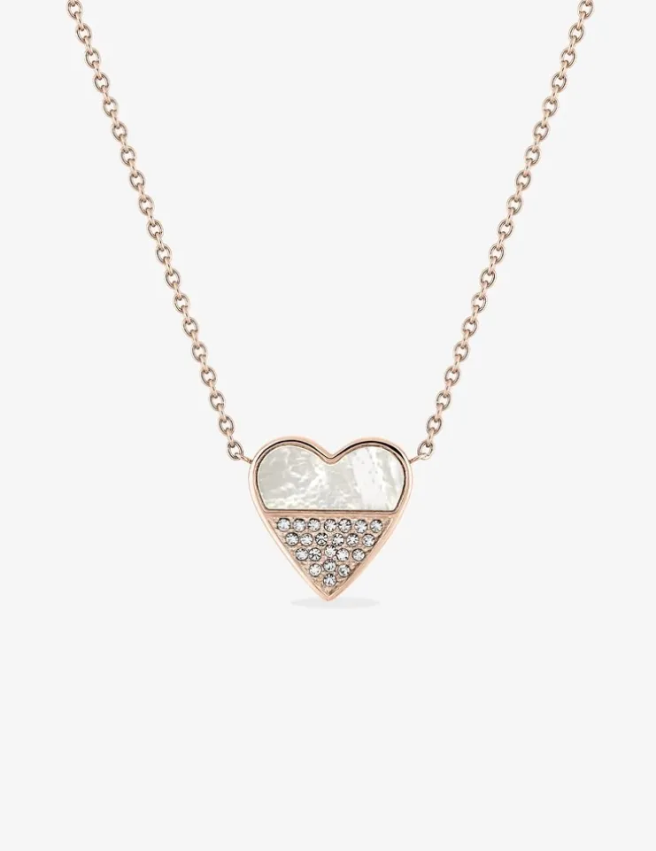 Adoptez ce magnifique collier en acier rose accompagné d’un motif en forme de cœur. D’une longueur de 40 cm avec une chaîne de rappel de 5 cm, il est accompagné d’un motif en forme de cœur. Celui-ci dispose d’une partie nacrée et en dessous des pierres de cristal synthétique venant illuminer le collier.Il se ferme à l’aide d’un fermoir anneau ressort.Un sublime collier à porter à toutes les occasions.