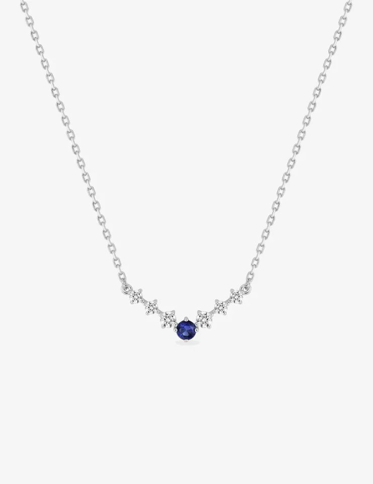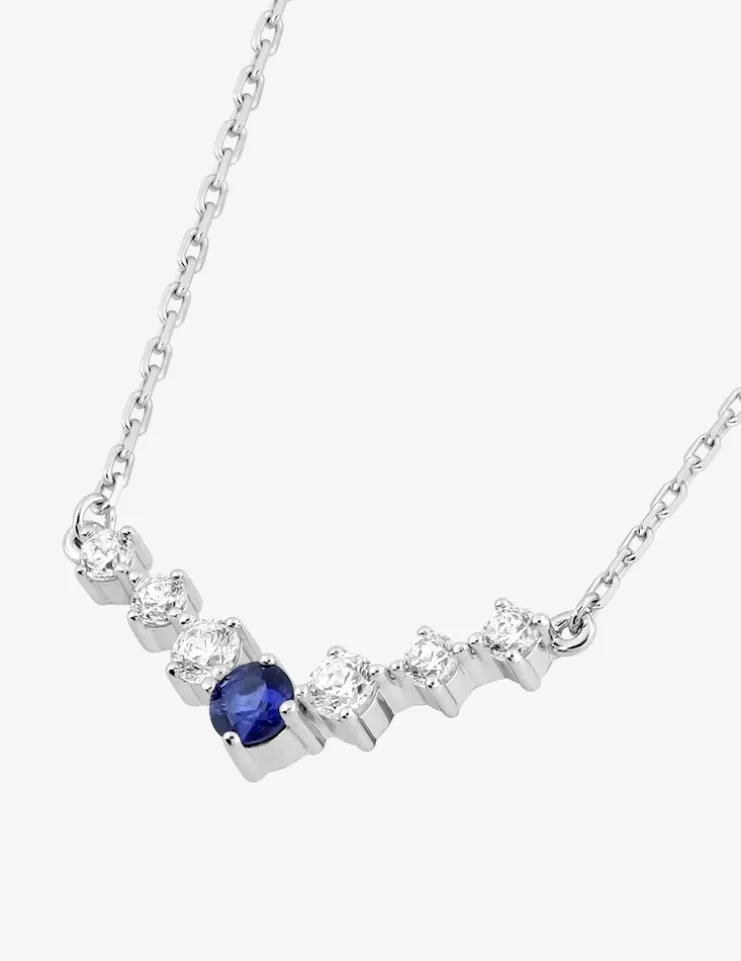 Collier en argent 925 ‰ rhodié, oxydes de zirconium bleu et blancs SO OR