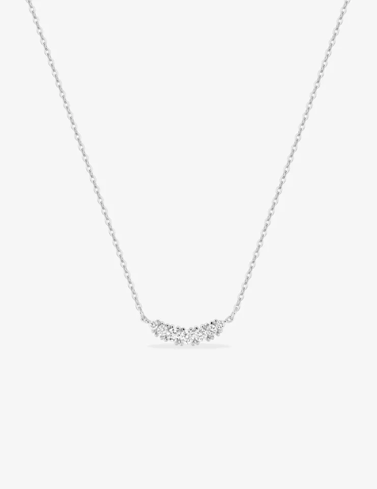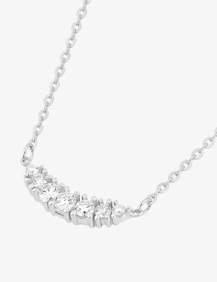 Collier en or blanc 375‰ pendentif demi-lune 7 diamants synthétiques 0,17 ct F-VS SO OR