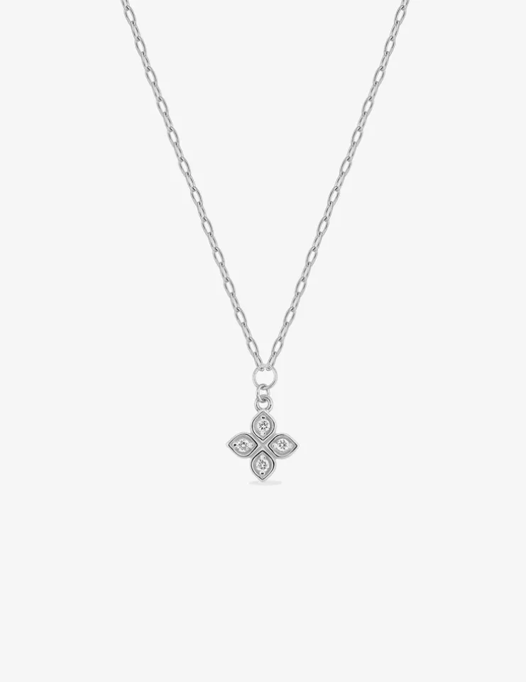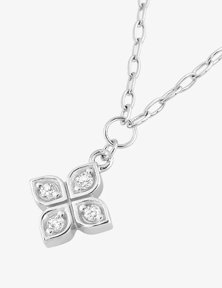 Ce collier en or blanc 375 ‰ (9 carats) resplendit par l’éclat de ses quatre diamants de 0,05 ct délicatement sertis dans un élégant motif. Sa chaîne ajustable de 42 cm, dotée d’un anneau intermédiaire à 40 cm, s’adapte parfaitement à votre décolleté. Son poids d’or moyen de 1,45 g allie légèreté et préciosité pour un confort optimal au quotidien. La pureté de l’or blanc et le scintillement des diamants créent une harmonie parfaite, offrant un bijou d’exception qui traversera les époques avec grâce, idéal tant pour les occasions spéciales que pour apporter une touche de luxe à vos tenues de tous les jours.