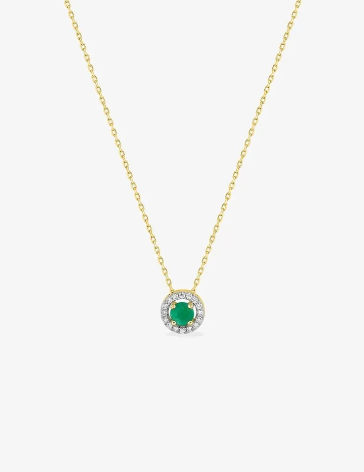 Collier en or jaune 375 ‰ avec émeraude et oxydes de zirconium SO OR