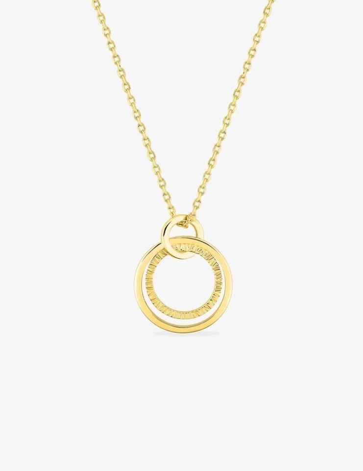 Ce collier plaqué or se distingue par ses anneaux entrelacés qui ajoutent une touche d’élégance raffinée. Avec un poids de 2,30 g et une longueur de 42 cm, il s’ajuste parfaitement autour de votre cou. Vous pouvez retrouver le même design en bracelet et en boucles d’oreilles pour compléter votre ensemble avec harmonie.