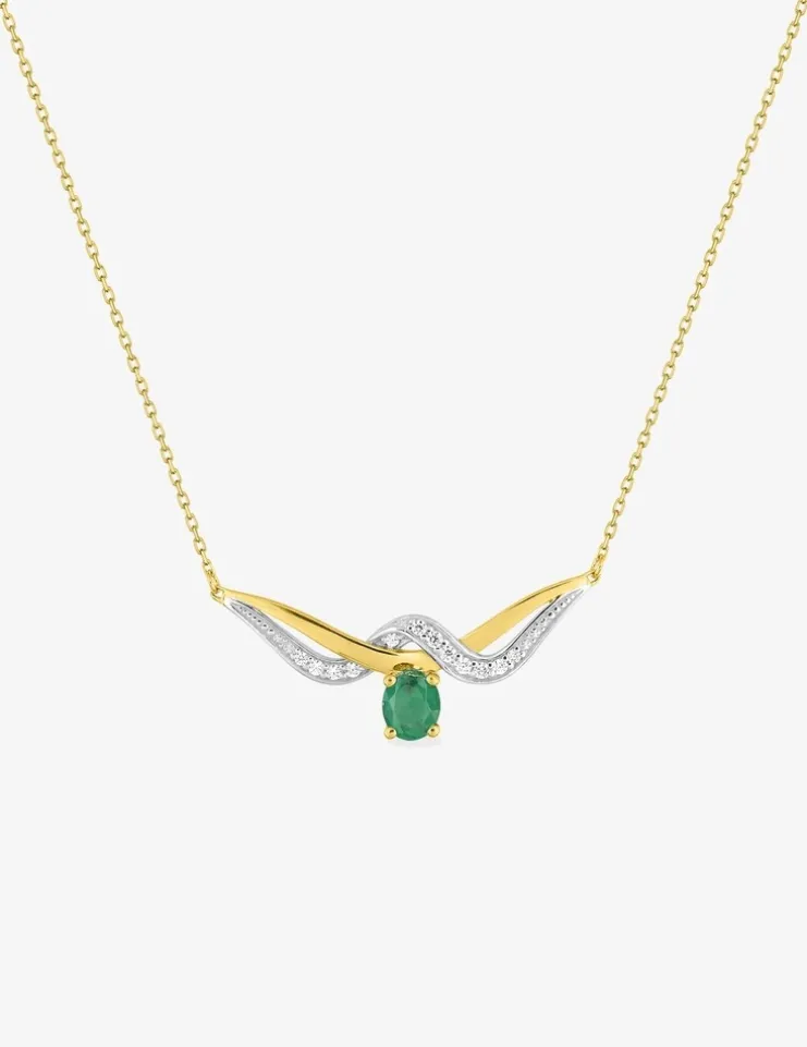 Collier fantaisie émeraude, oxydes de zirconium, or jaune 375‰ et rhodium SO OR