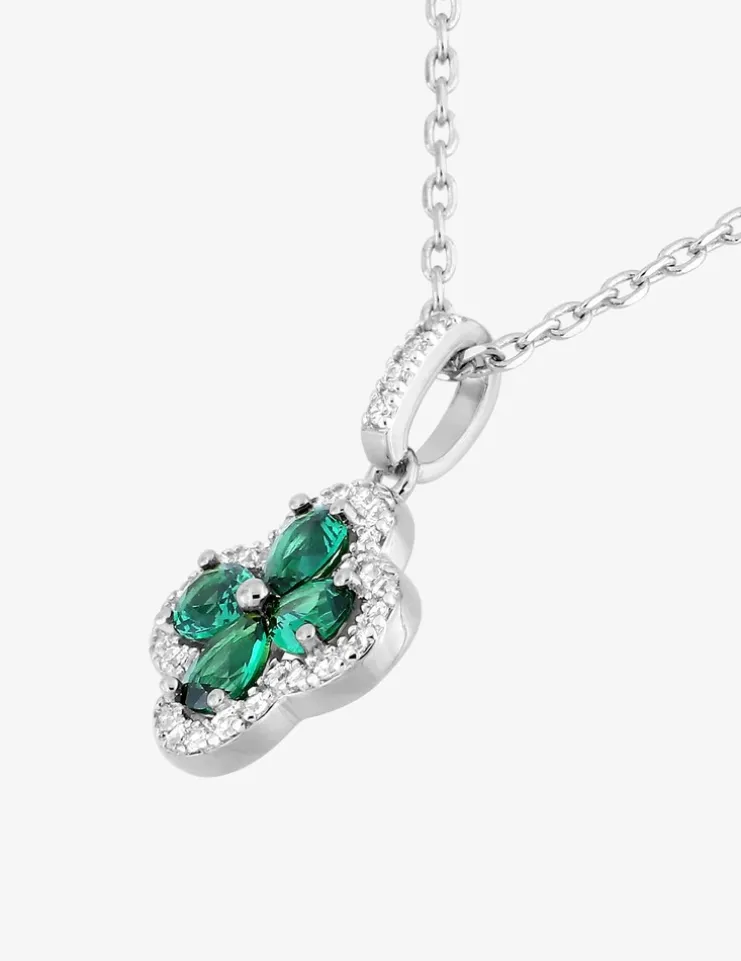 Collier fleur argent 925‰ rhodié et oxydes de zirconium verts et blancs SO OR