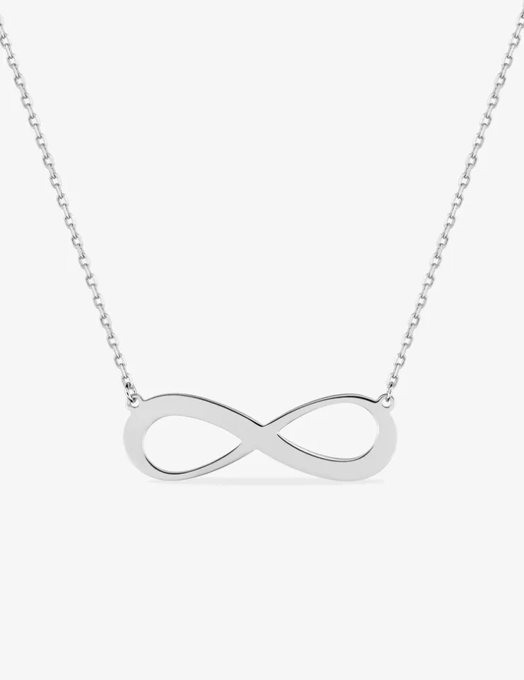 Ce collier en argent 925‰ rhodié est composé d’une chaîne forçat de 42 cm et d’un motif d’infini de 30 mm de longueur. Personnalisable, il peut être un bijou symbolique et unique.