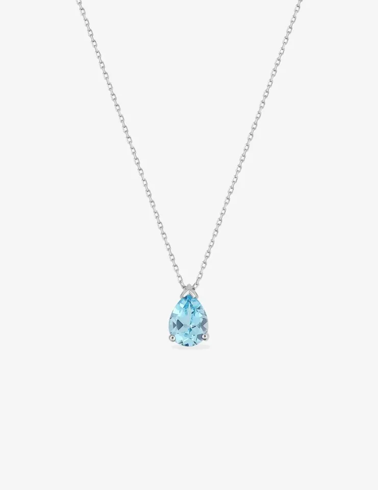 Collier or blanc 375 ‰ et topaze bleue traitée taillée en poire SO OR