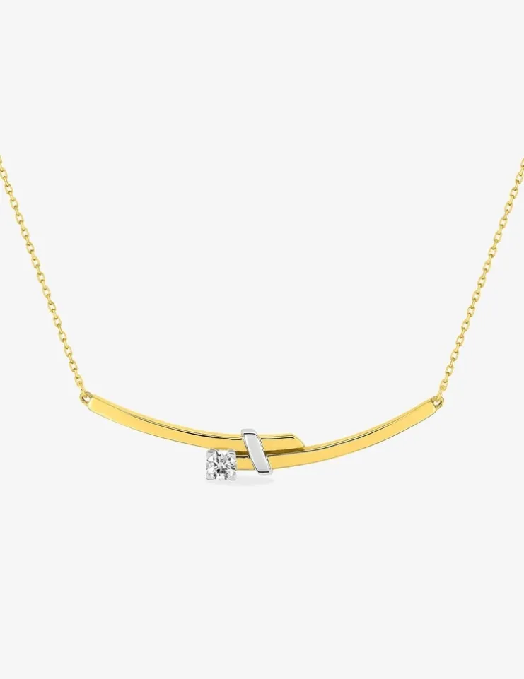Collier or jaune 375‰ et rhodié avec oxyde de zirconium 4 griffes SO OR