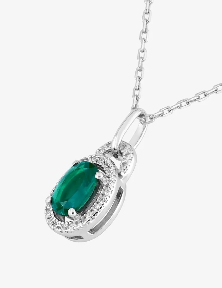 Le pendentif de ce collier en argent 925‰ rhodié est composé d’un oxyde de zirconium vert serti griffes et d’oxydes de zirconium blancs qui l’accompagnent. La chaîne mesure 40 cm plus 3 cm de chaîne de rappel et le motif mesure 13 mm de hauteur sans la bélière.