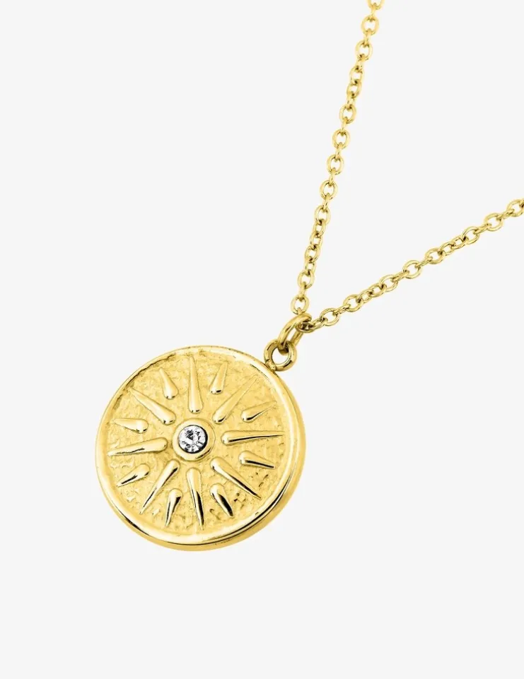 Collier pendentif acier doré et cristal blanc SO OR