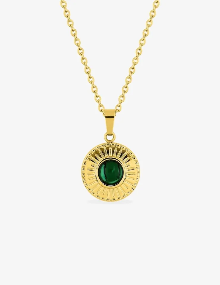 Collier pendentif fantaisie acier doré, motif malachite synthétique SO OR