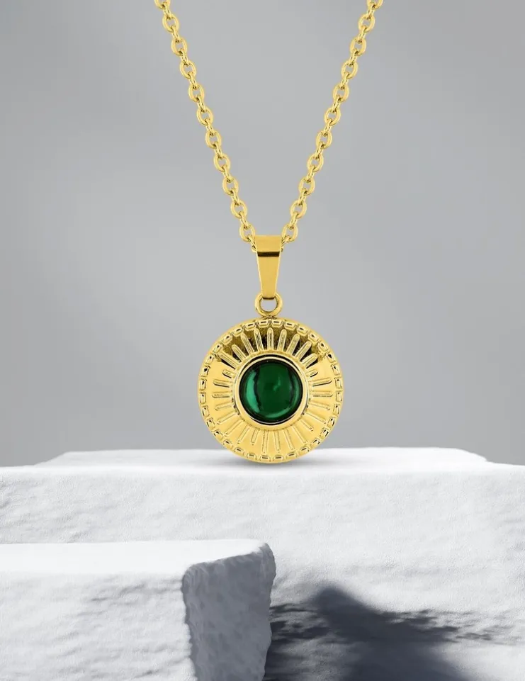Be the first to review “Collier pendentif fantaisie acier doré, motif malachite synthétique SO OR” Annuler la réponse