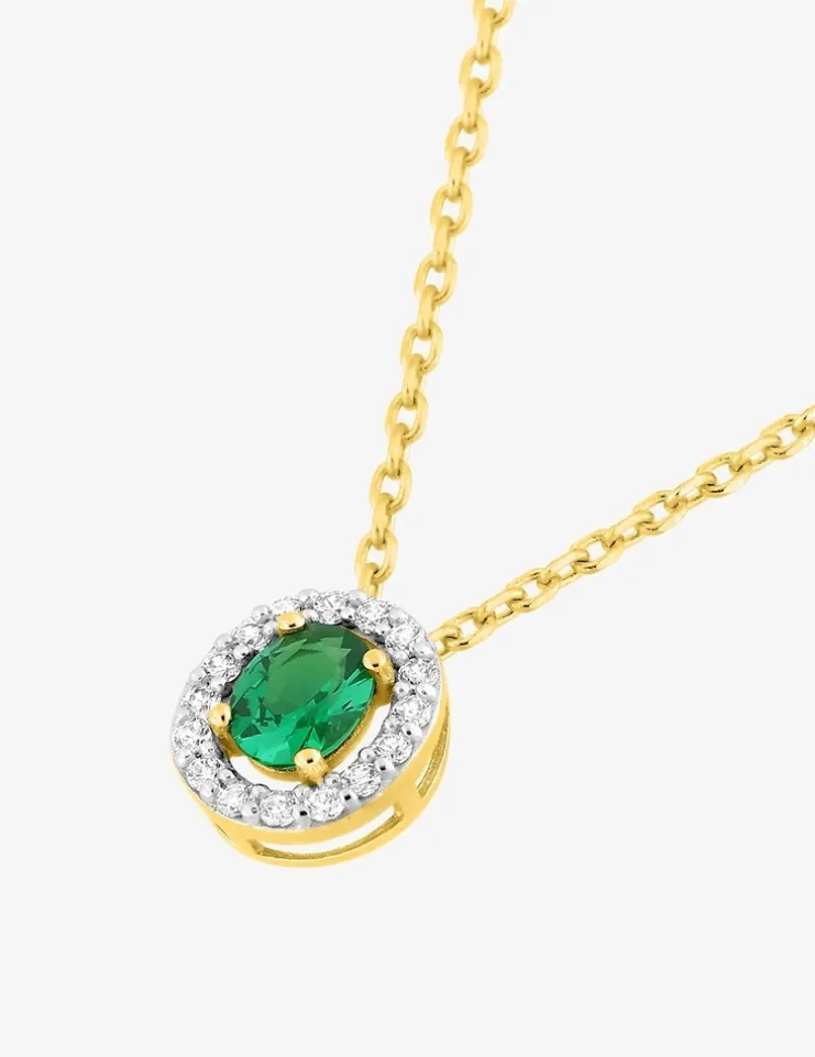 Collier plaqué or avec pendentif oxydes de zirconium blancs et vert SO OR