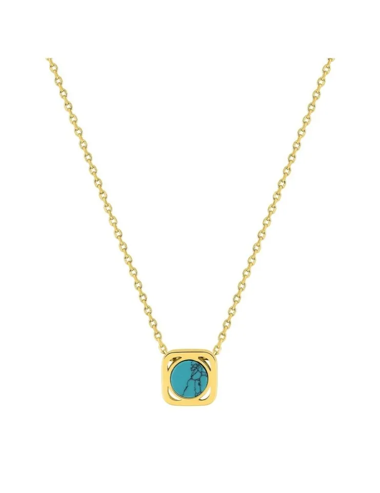Collier en plaqué or orné d’une délicate turquoise bleue de 6 mm de diamètre et 1,5 mm d’épaisseur, enchâssée dans un élégant serti clos carré. Ce bijou raffiné mesure 40 cm avec une rallonge pratique de 3 cm, permettant un ajustement parfait. D’un poids matière de 3,00 g, il offre une présence subtile au quotidien. Doté d’un fermoir mousqueton sécurisé, ce collier marie harmonieusement la chaleur du plaqué or à la fraîcheur envoûtante de la turquoise bleue.