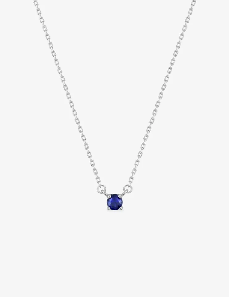 Collier solitaire argent 925‰ rhodié et oxyde de zirconium bleu foncé 4 mm SO OR