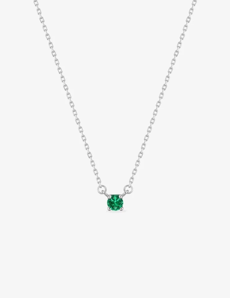Collier solitaire argent 925‰ rhodié et oxyde de zirconium vert 4 mm SO OR