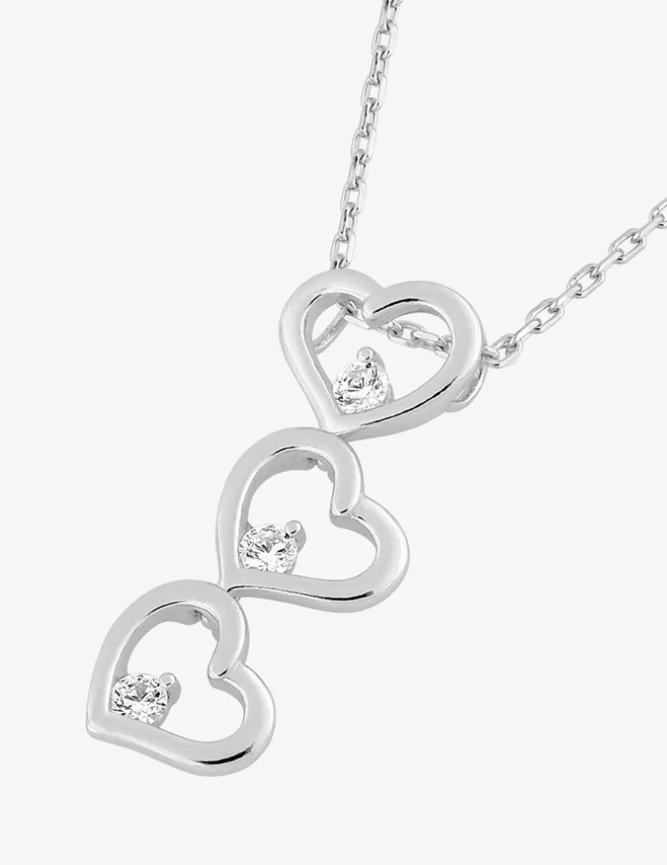 Collier triple cœur argent 925‰ rhodié et oxydes de zirconium SO OR