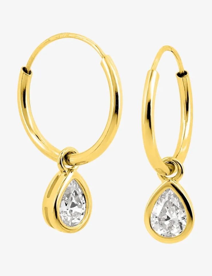 Créoles or jaune 750 ‰, oxydes de zirconium avec breloques "goute" SO OR