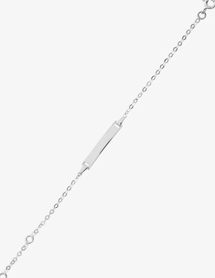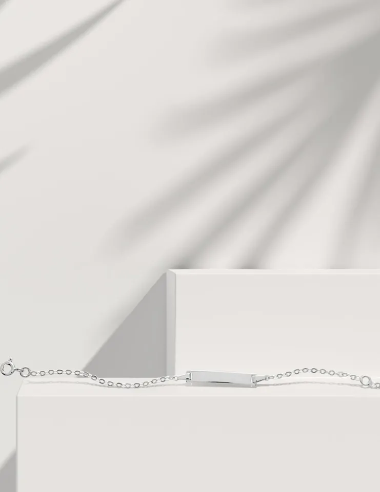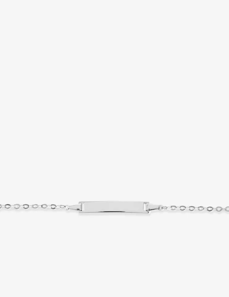 Cette gourmette bébé est en or blanc 375 ‰ (9 carats). Elle dispose d’un motif rectangulaire pour la recevoir la gravure. Ce bijou a un poids moyen d’or de 1,20 g pour une longueur de 14 cm. Il est équipé d’un anneau souple à 12 cm et d’un fermoir anneau ressort.Pour la naissance ou le baptême d’un enfant, la gourmette est un cadeau idéal, c’est un bijou à la fois personnalisé, sentimental et intemporel.
