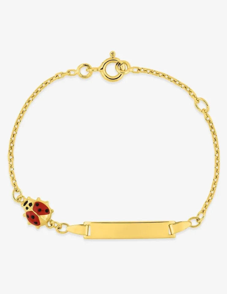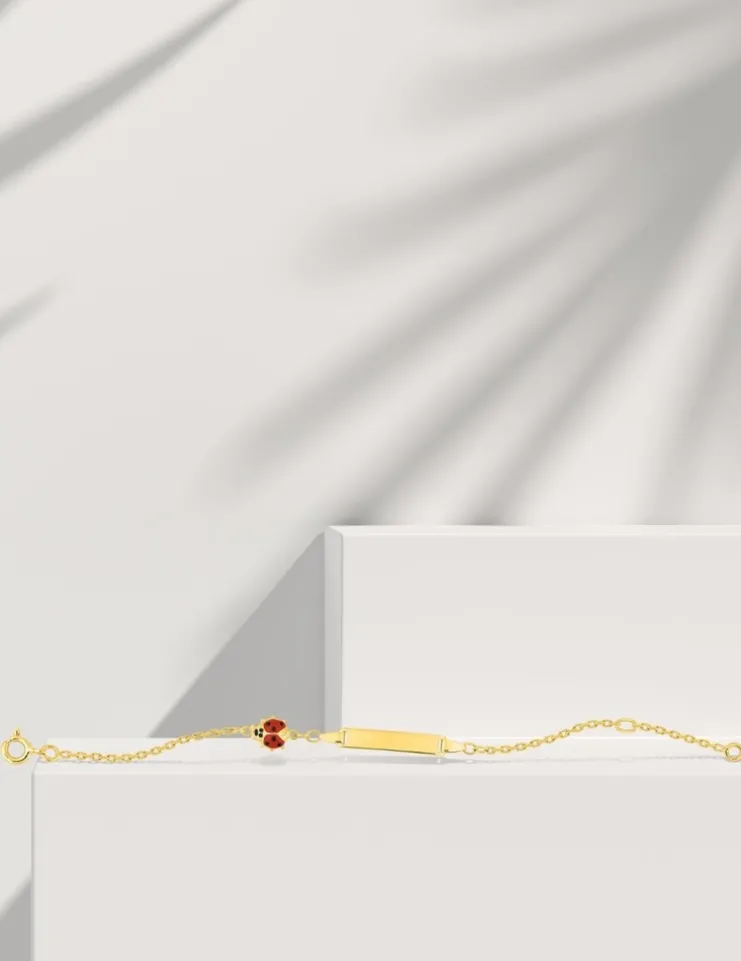 Cette gourmette bébé est en or jaune 375 ‰ (9 carats). Ce bijou a un poids moyen d’or de 1,60 g pour une longueur de 14 cm. Il est équipé d’un anneau souple à 12 cm et d’un fermoir anneau ressort. La plaque de forme rectangulaire personnalisable et précédée d’une coccinelle.Pour la naissance ou le baptême d’un enfant, la gourmette est un cadeau idéal, c’est un bijou à la fois personnalisé, sentimental et intemporel. De plus dans de nombreux pays, la coccinelle est un porte-bonheur.