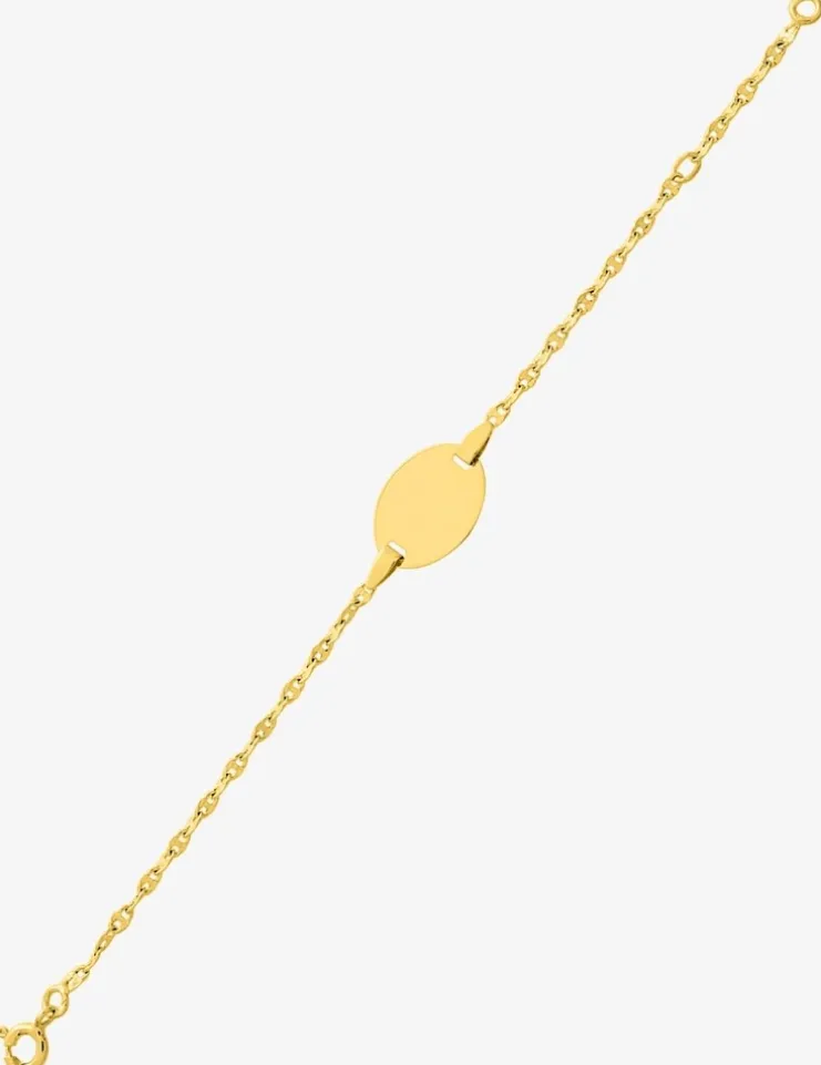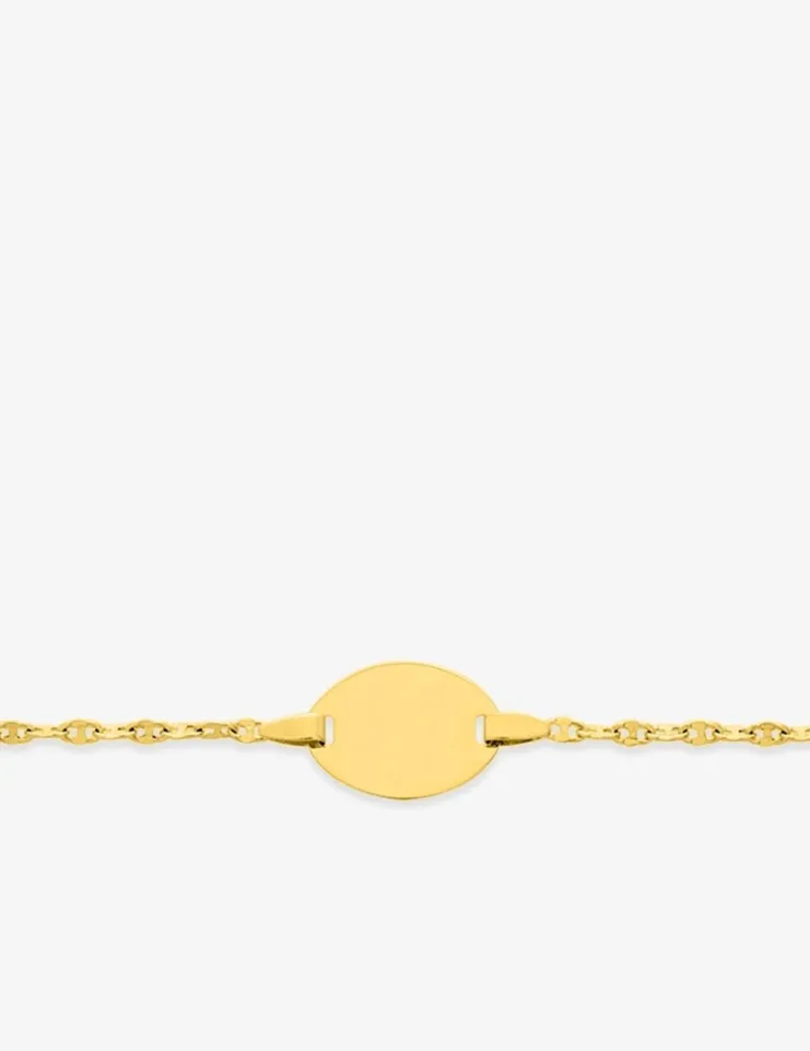 Gourmette bébé or jaune 750 ‰ plaque ovale et chaîne grain de café SO OR