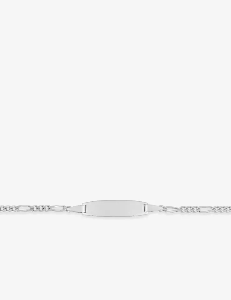 Gourmette identité pour bébé en argent 925‰ rhodié, avec une maille alternée 1+3 et une plaque gravable. Pesant 1,95 g, elle mesure 15 cm de longueur avec un anneau intermédiaire à 13 cm, et se ferme facilement grâce à un fermoir anneau ressort. Ce bijou combinant personnalisation, valeur sentimentale et intemporalité sera parfait pour embellir le quotidien de votre bébé avec sécurité et élégance.