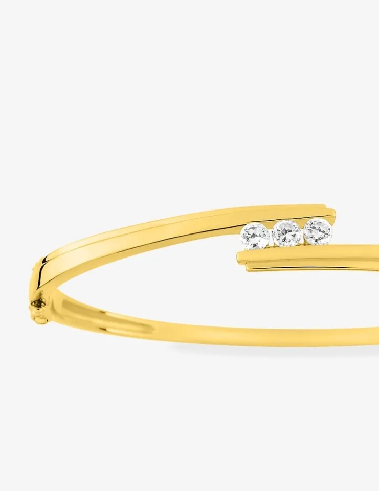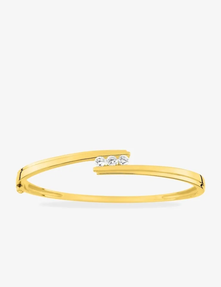 Jonc ouvrant plaqué or et trilogie d’oxydes de zirconium SO OR