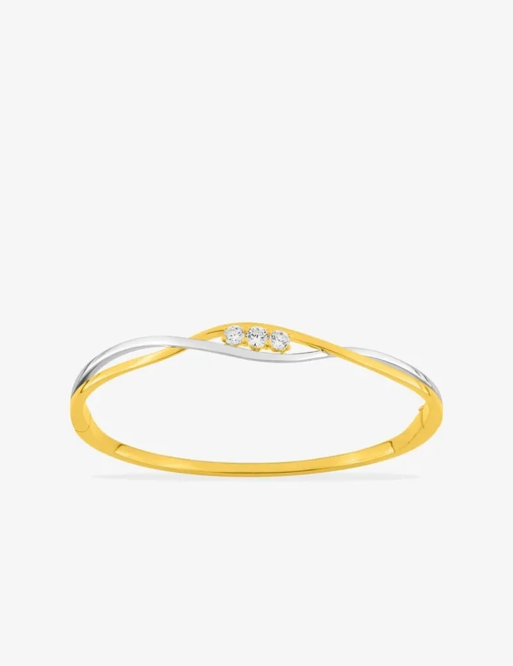 Jonc ouvrant vagues bicolores plaqué or, rhodium et trilogie d’oxydes de zirconium SO OR