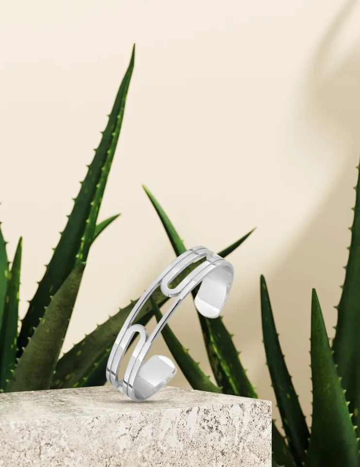 Entre légèreté et finesse, cette manchette Graphique en argent 925‰ rhodié est le bijou parfait pour être au top de la tendance cette saison. Un bijou audacieux qui saura aussi bien terminer une tenue décontractée que mettre en valeur votre belle tenue de soirée.