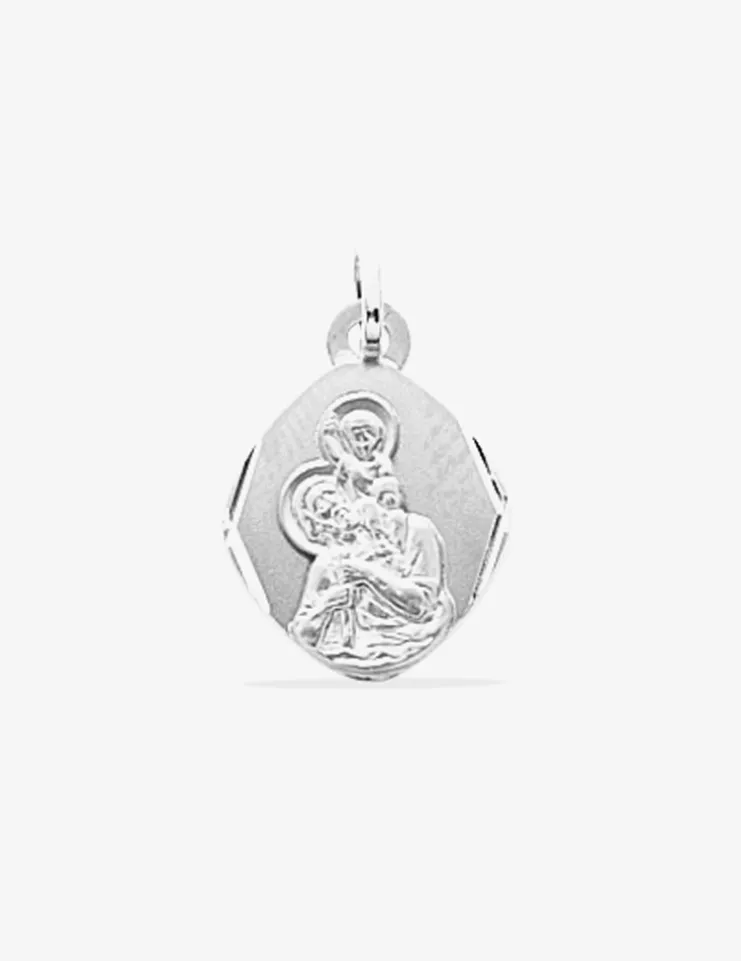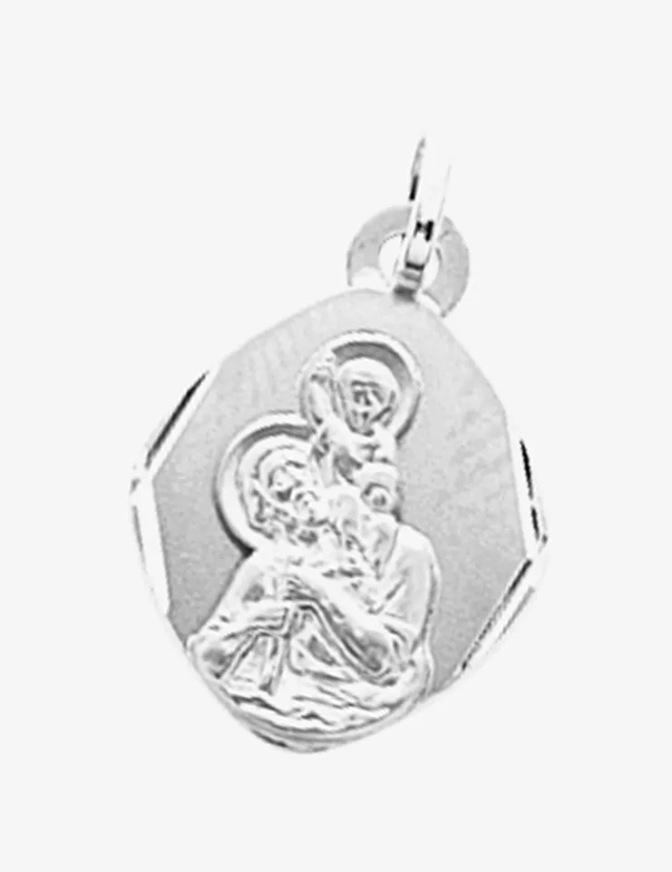 Cette médaille en argent 925‰ rhodié est composée d’une plaque losange de 10 mm de côté montée sur une bélière. Une représentation de Saint Christophe est apposée en relief sur la médaille. Gravable, ce pendentif peut être un beau cadeau unique pour un évènement religieux.