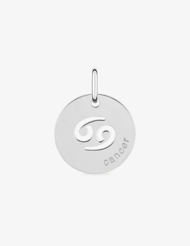 Pendentif en argent 925 ‰ rhodié avec signe zodiaque cancer. Ce pendentif de 0,90 g.est idéal pour être porté avec une chaine. La bélière mesure 6 mm de long.,tandis que le jeton, avec ses 15 mm de diamètre, ajoute une touche personnelle et unique à votre bijou.
