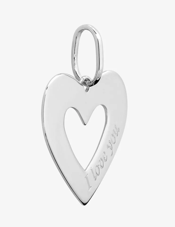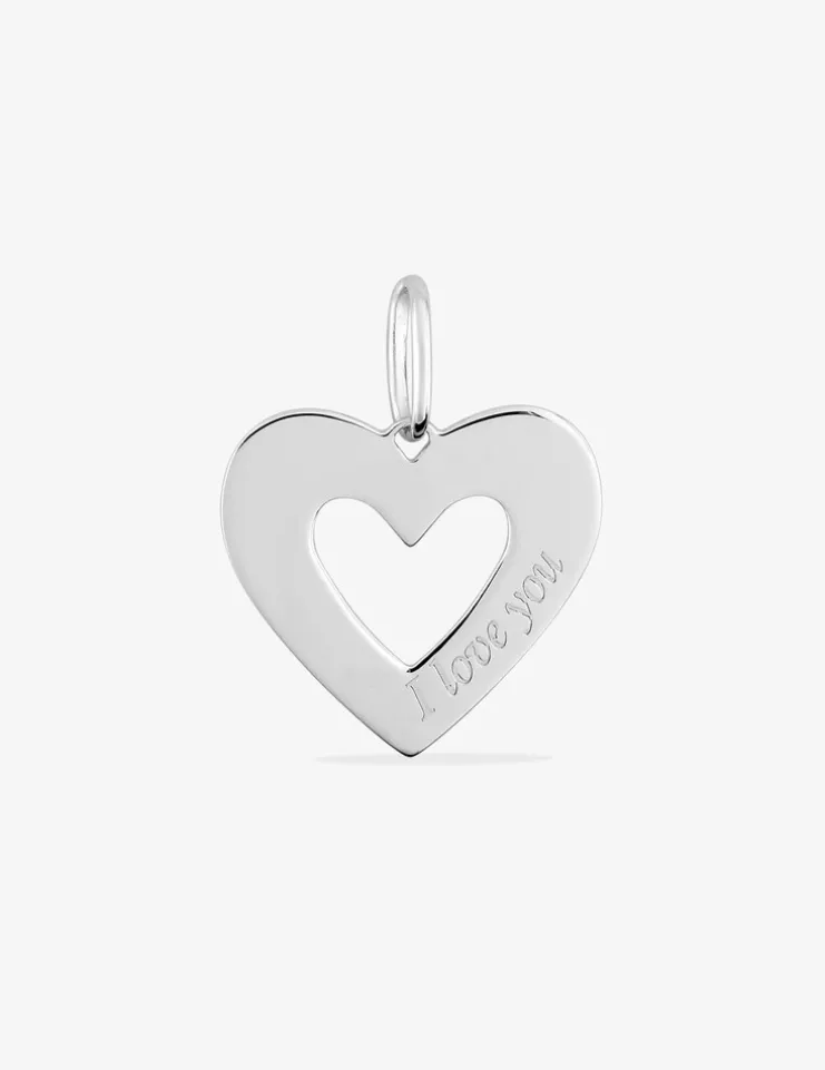 Pendentif cœur ajouré argent rhodié 925 ‰ gravé "I love you" SO OR