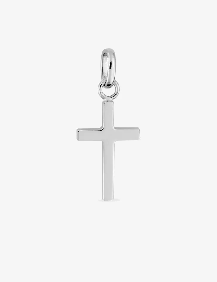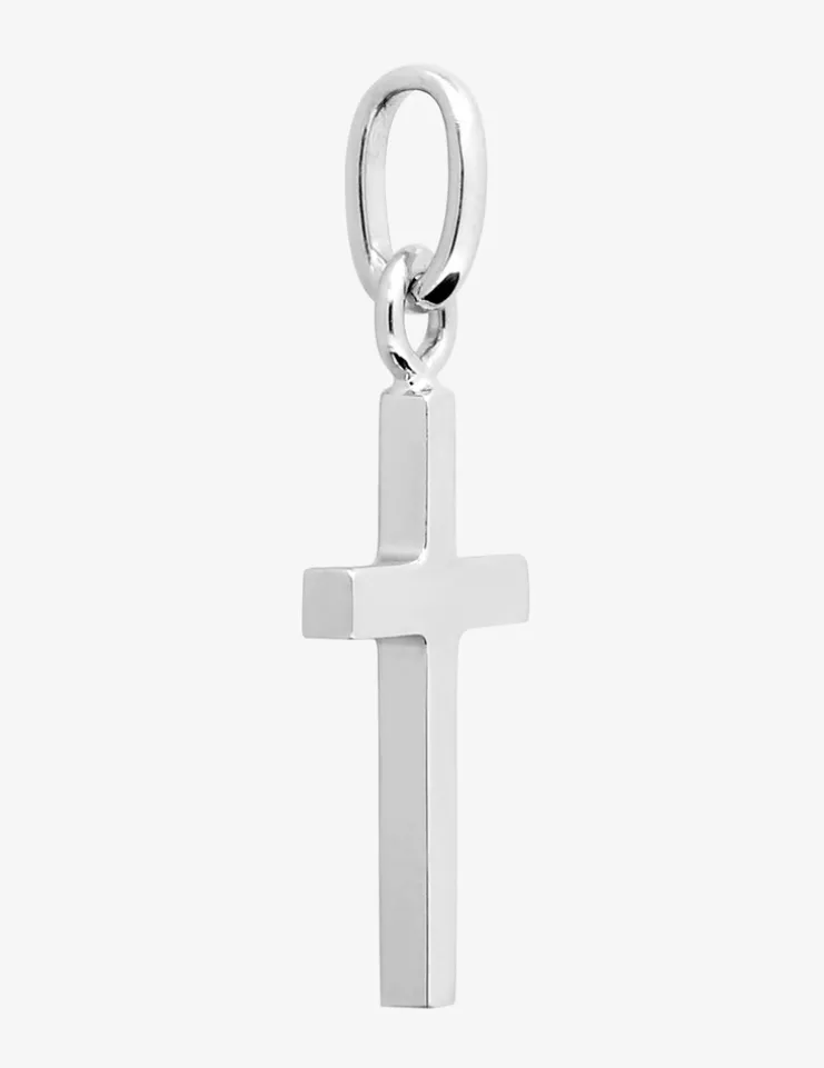 Pendentif croix en or gris 750 ‰ (18 carats), elle est montée sur une bélière et a un poids d’or moyen de 1,25 g, ses dimensions sont de 10 x 22 mm.