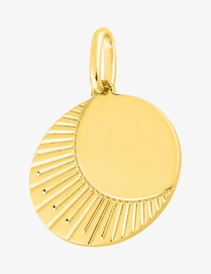 Optez pour ce pendentif en plaqué or.Ce pendentif est composé d’une plaque ronde avec sur le dessus un demi-soleil.