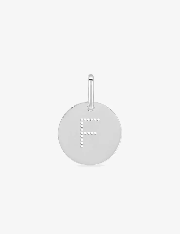 Ce pendentif en argent 925‰ rhodié est composé d’un jeton de 12 mm de diamètre monté sur une bélière. La lettre F est percée sur le jeton pour faire de ce pendentif un bijou personnel avec l’initiale de votre prénom ou de celui de quelqu’un que vous aimez.