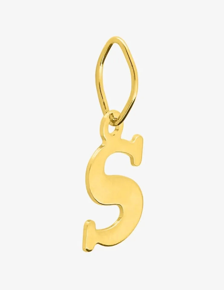 Ce pendentif en forme de lettre S est fait en or jaune 750‰ (18 carats) et est monté sur une bélière. Il mesure 14 mm de hauteur bélière comprise, pour un poids d’or de 0,20 g. Un bijou personnel à porter au quotidien.