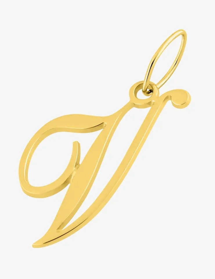 Pendentif lettre V écriture anglaise plaqué or SO OR