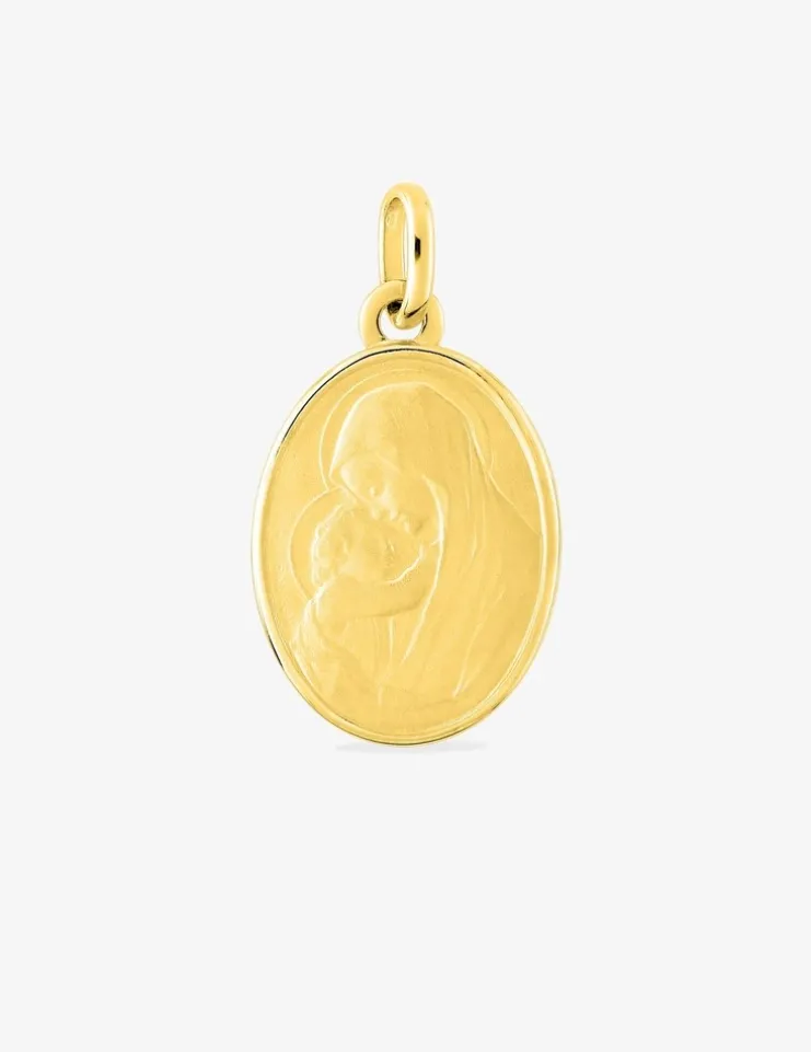 Pendentif médaille vierge à l'enfant or jaune 750 ‰ 15 x 25 mm SO OR