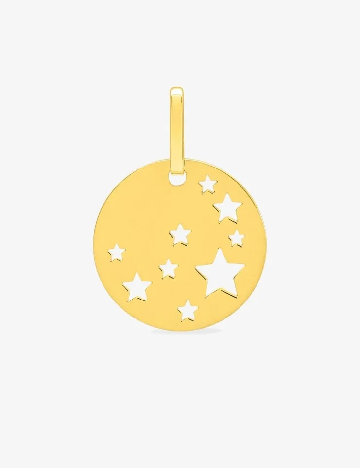 Pendentif plaque ronde étoiles or jaune 750 ‰ SO OR